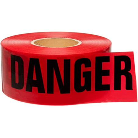 The HDX 3-inch x 200 ft. Danger Barricade Tape is for use in hazardous areas. This red tape has a black print which reads Danger/Peligro. Made of durable plastic, it remains pliant in cold weather.