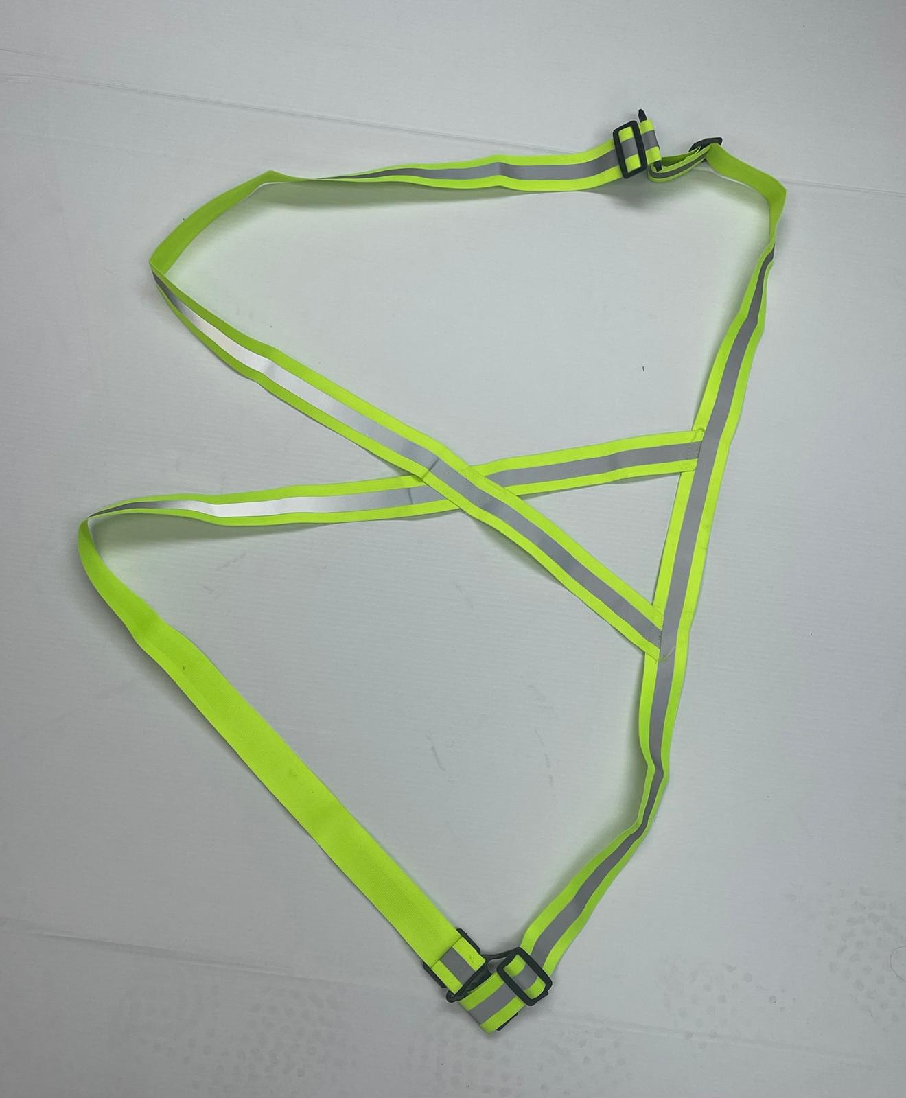Stay visible and safe with this reflective belt vest featuring silver and green stripes. Lightweight, durable, and ideal for outdoor and industrial work.