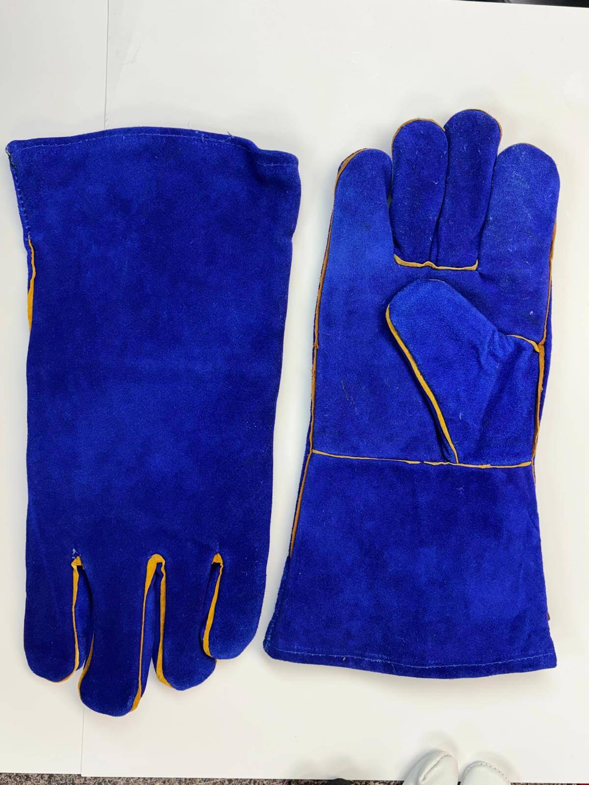 Durable and heat-resistant, these blue leather welding gloves provide reliable protection for hands during welding, metalwork, and high-temperature tasks. Comfortable and long-lasting for industrial use.